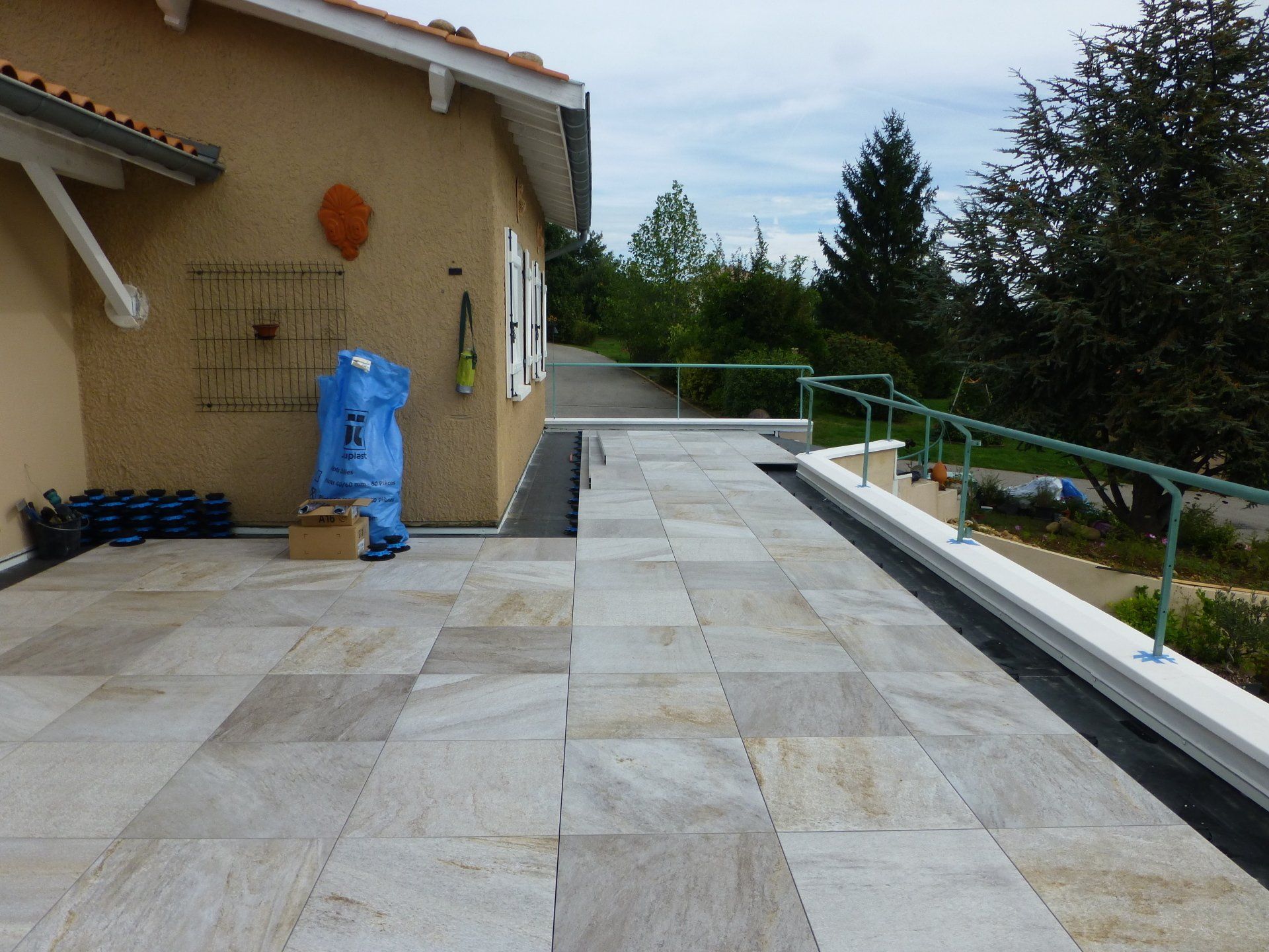 Toiture + solaire photovoltaïque + terrasse dalles sur plots